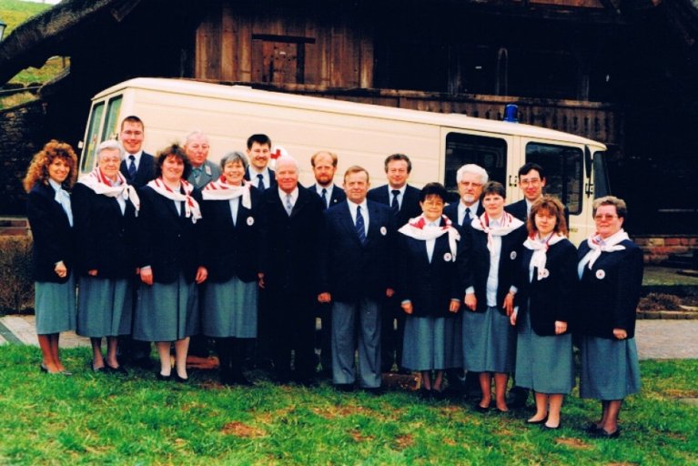 halbes Dutzend an den Übungen und Einsätzen. Auf Anregung von Bernhard Schülle und August Winkelspecht beschloss man 1958, sich künftig “DRK Ortsverein Unter-/ Oberharmersbach” zu nennen. Somit ist dies bis heute die einzigste Organisation in der Bürger des ganzen ehemaligen Reichstals Harmersbach zusammenarbeiten.